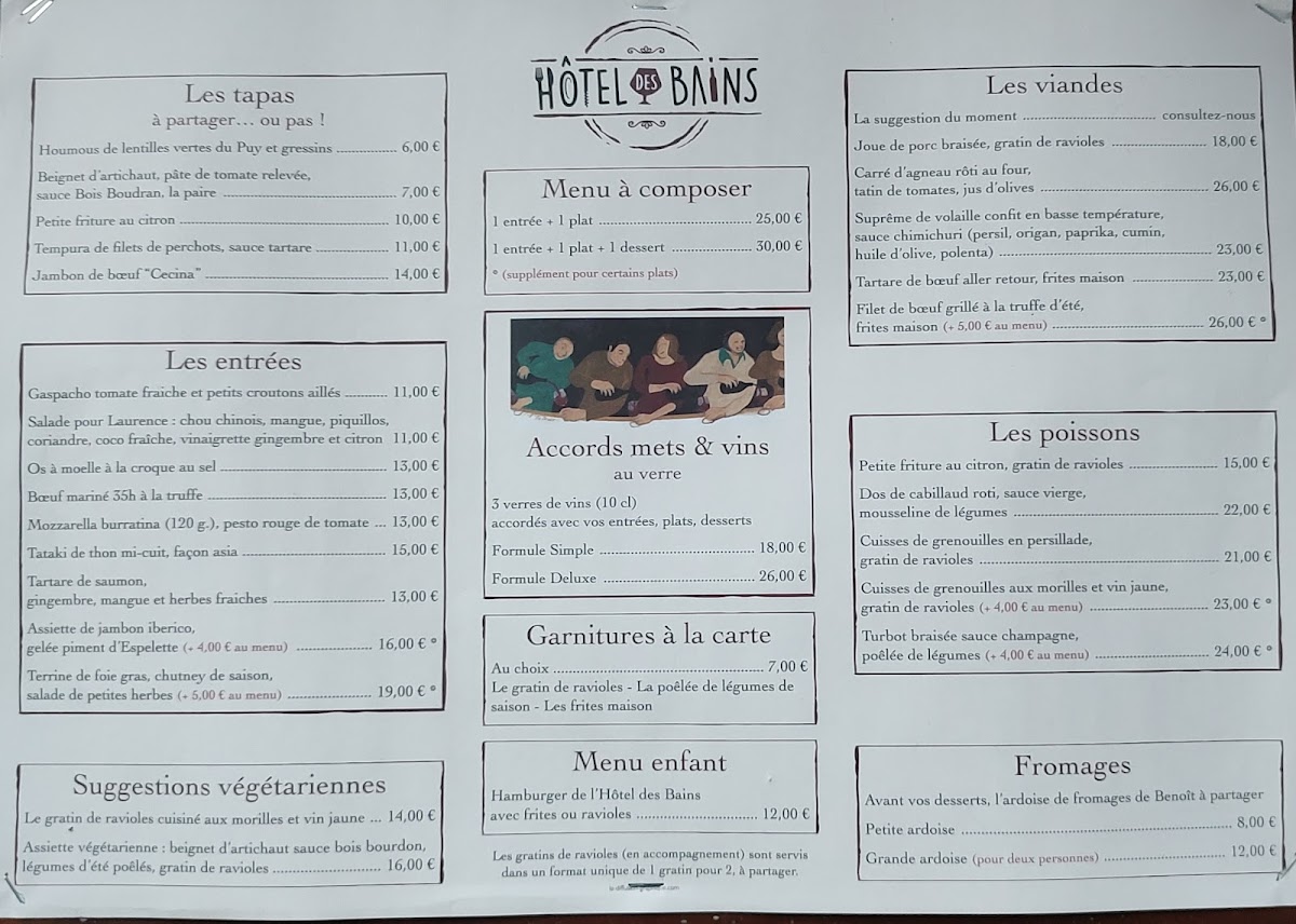 Introducing the menu at Hôtel des Bains, a culinary gem nestled in the heart of Charavines, France. This vibrant establishment is not just a hotel; it boasts an exceptional restaurant that has wowed guests with its exquisite offerings. The ambiance exudes warmth and charm, making it a delightful place for families and friends alike.