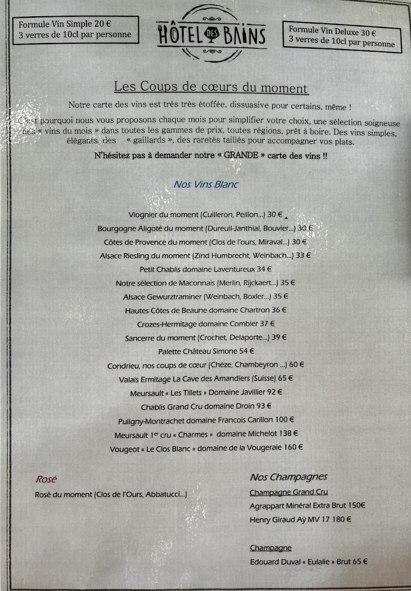 Overall, Hôtel des Bains stands as a must-visit destination for those seeking exceptional food, a stunning atmosphere, and a curated wine experience.